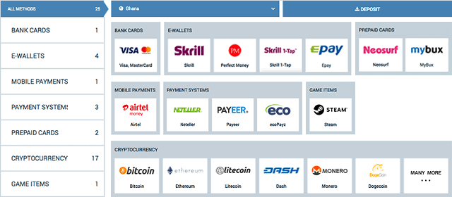 | Cryptocurrency | Bitcoin, Ethereum | Instant deposits and withdrawals | Privacy focused users |